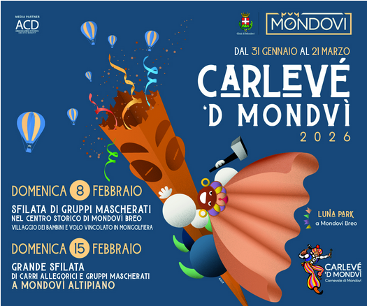 Dal 31 gennaio al 21 febbraio, le tradizionali maschere del carnevale di Mondovì animeranno la nostra Città con un ricco programma di iniziative per tutti i gusti!